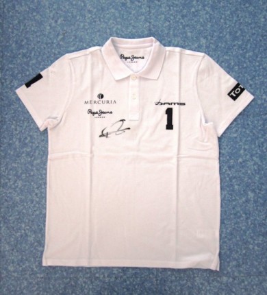 1 Polo (taille M) PePe Jeans édition spéciale fabriqué pour le titre de Romain Grosjean en GP2 Series 2011 avec l'équipe DAMS, dédicacé par le pilote de F1 Romain Grosjean.